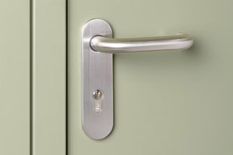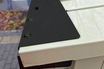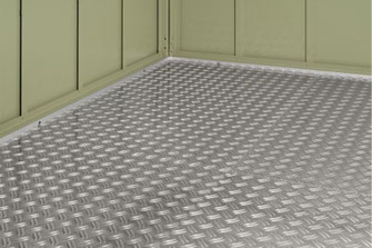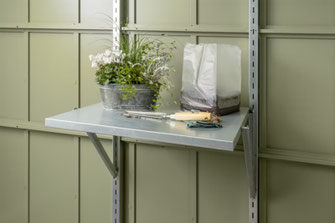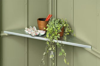 Eine elegante Edelstahl-Garnitur wertet dein Gerätehaus auf. Optional mit Zylinderschloss erweiterbar.