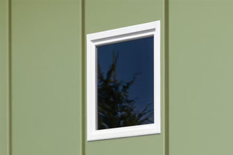 Bringe Tageslicht ins Gerätehaus mit bruchsicheren Verglasungselementen in Tür oder Wand.