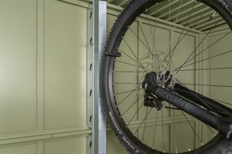 Der robuste Halter trägt Räder bis 40 kg und spart wertvollen Platz.