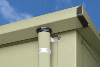 Das optionale Fallrohr ist farblich perfekt auf dein Gerätehaus abgestimmt.