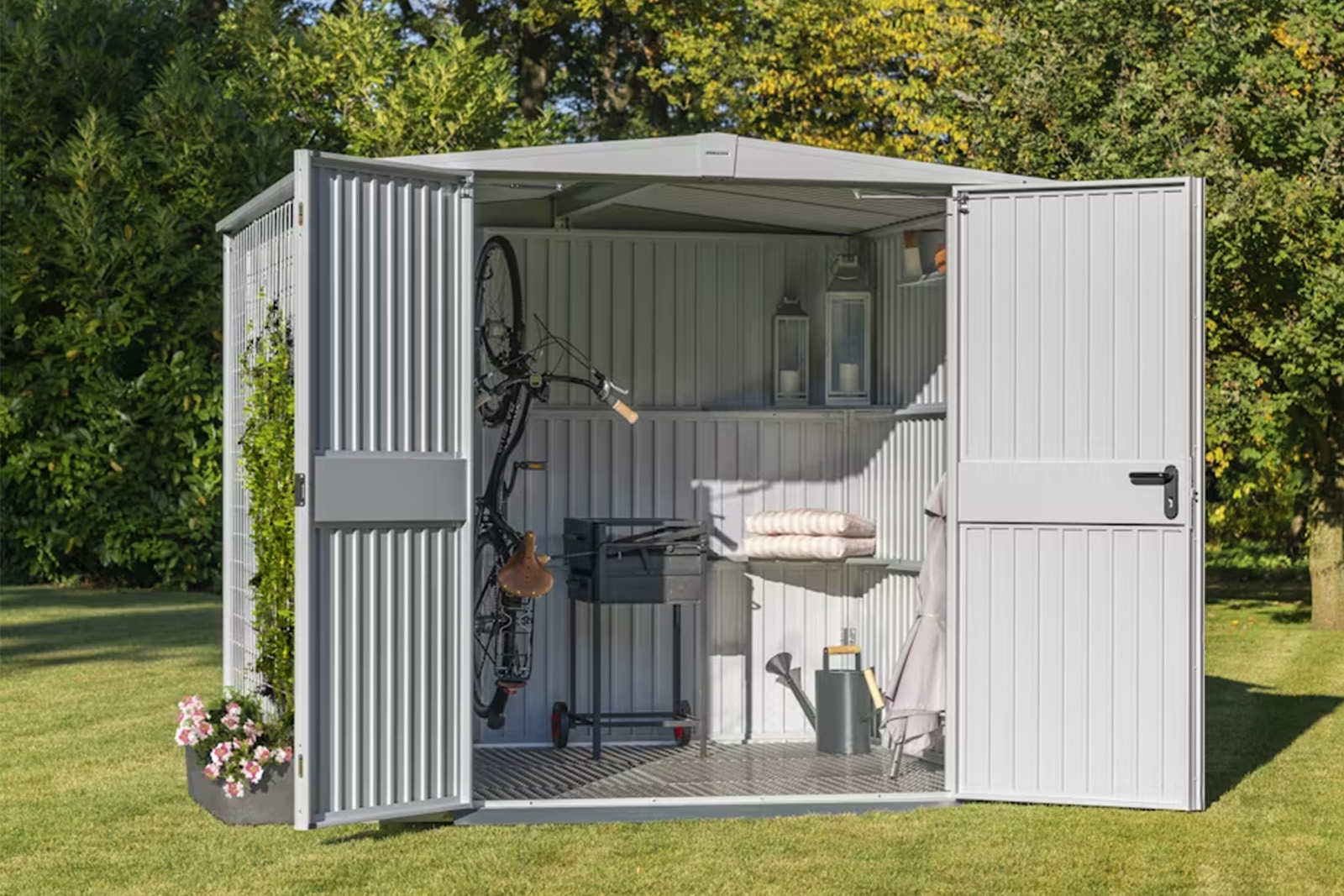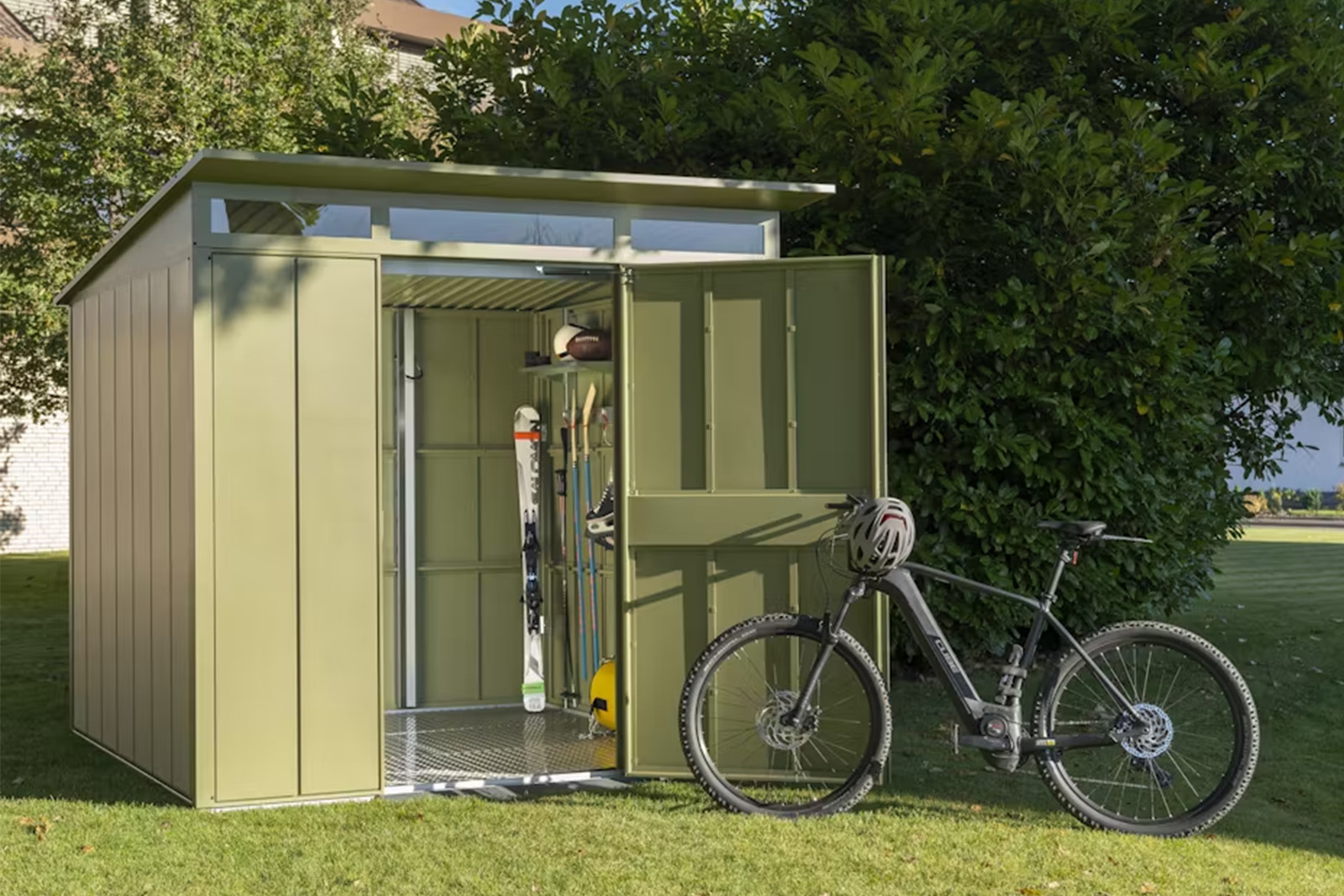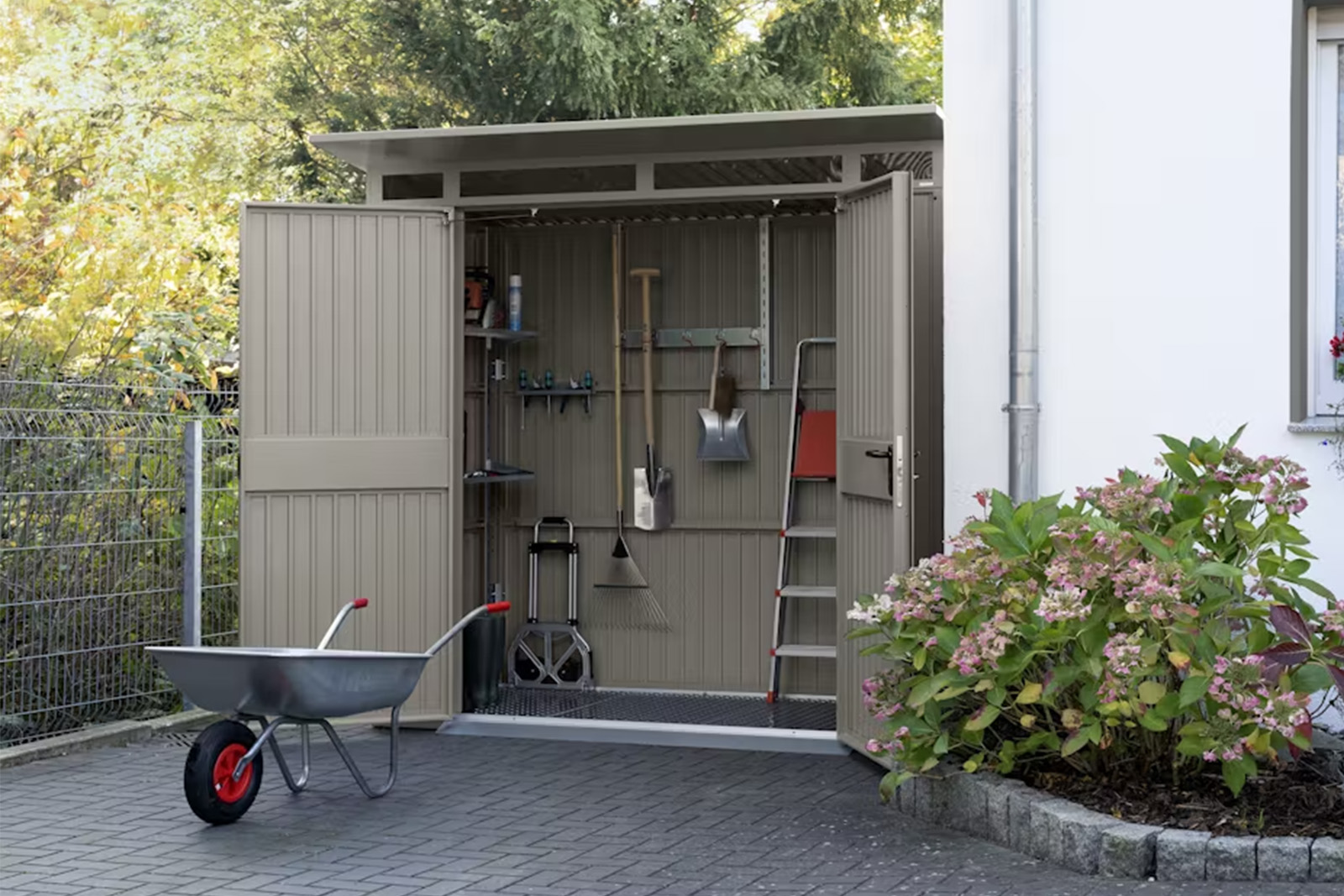 Entdecken Sie unsere modernen Gerätehäuser aus Metall – die clevere Lösung für mehr Stauraum im Garten, auf der Einfahrt oder im Hof. Ob Gartengeräte, Werkzeuge, Fahrräder oder Möbel: Alles ist wettergeschützt und ordentlich verstaut. Alle Gerätehäuser werden CO₂-neutral produziert – für mehr Ordnung heute und eine bessere Zukunft morgen.